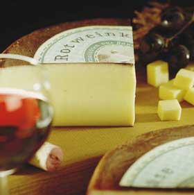 Dieser beliebte, halbfeste Schnittkäse wir aus silofreier Kuhmilch gekäst. Nach 5 monatiger Reifezeit, wird er 4 Wochen lang mit Rotwein behandelt. Dadurch erhält er seine dunkle, eßbare Rinde mit einem angenehmen Weinaroma.